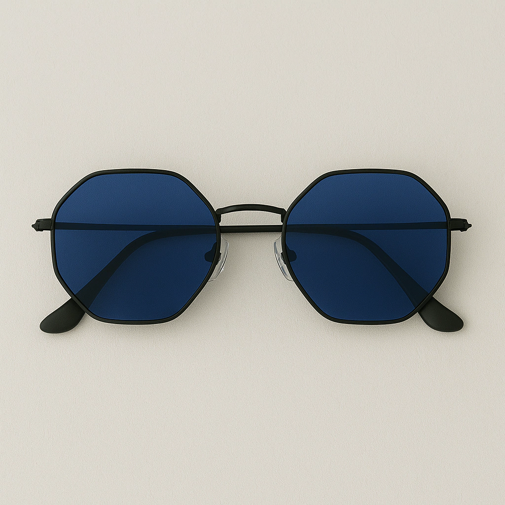 Se o estilo fala antes das palavras, o Óculos Octagonal Black Flow grita personalidade. Com uma combinação ousada de armação preta fosca e lente azul vibrante, este modelo é a escolha perfeita para quem carrega atitude no olhar e presença por onde passa.