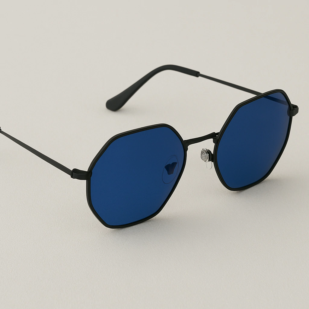 As lentes octagonais trazem um tom azul profundo e hipnotizante, com transição suave que adiciona profundidade e impacto visual. Além do visual marcante, protegem os olhos contra raios solares, mantendo a visão nítida com estilo.